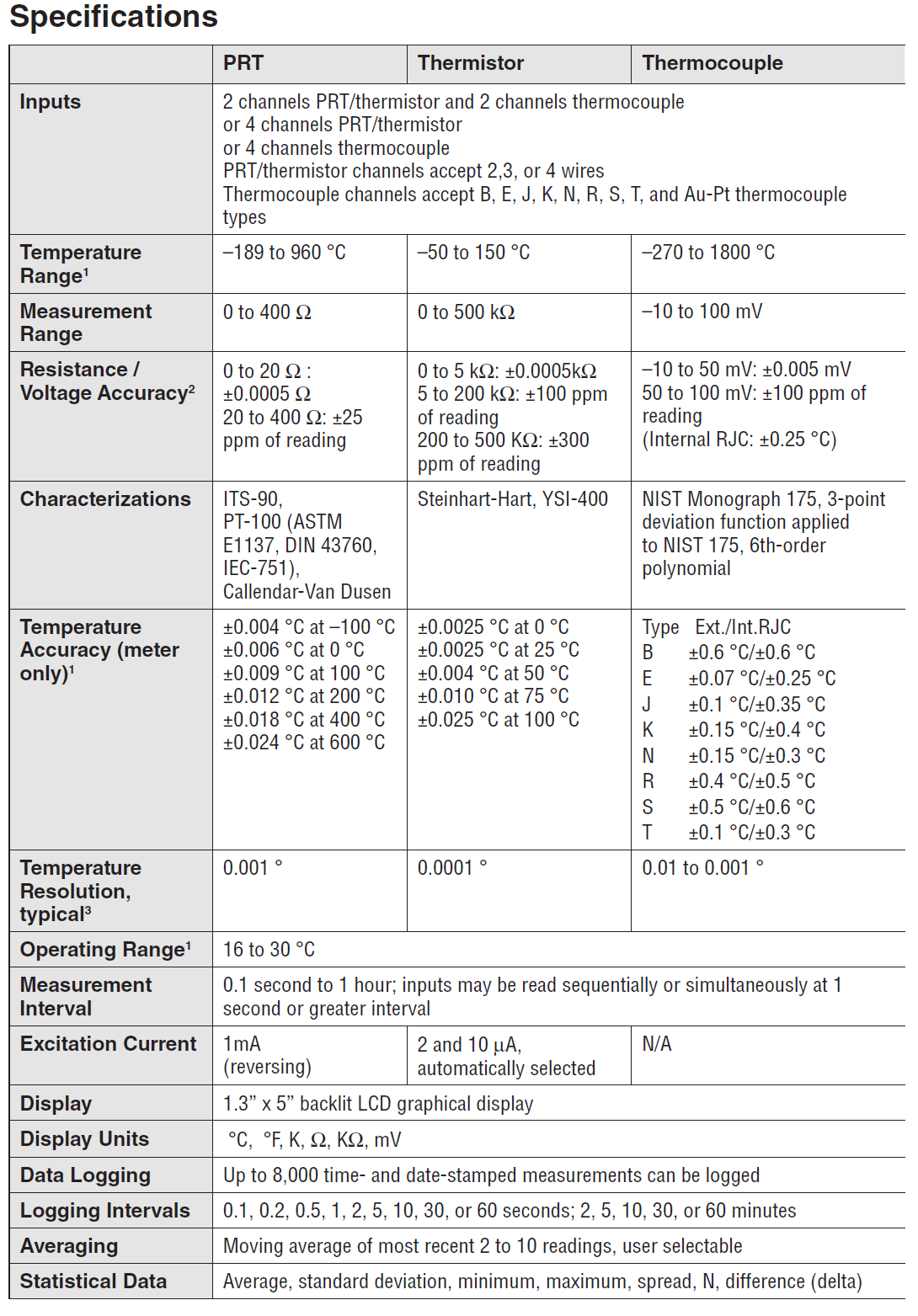 四通道 PRT、热敏电阻和热电偶均达到实验室质量准确度